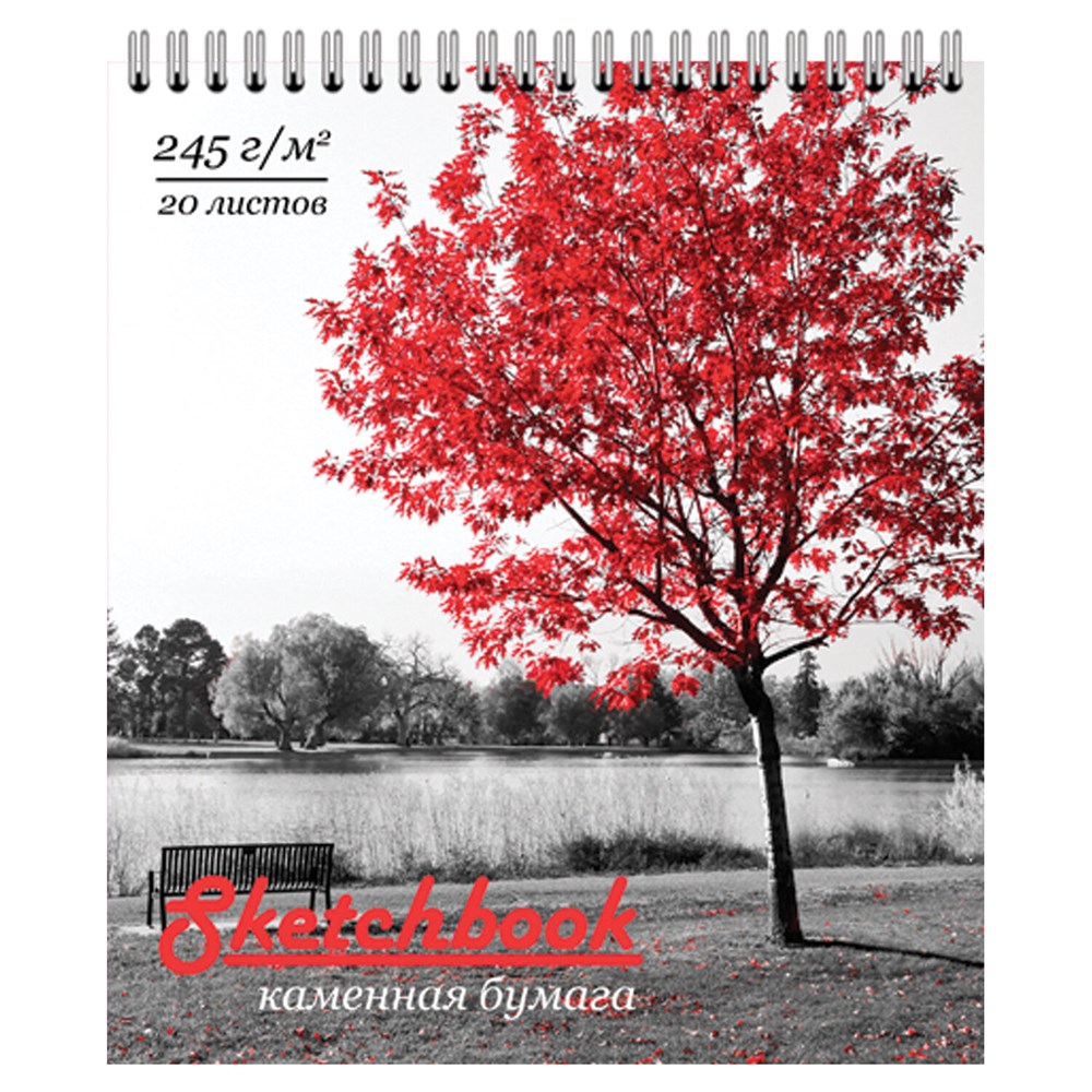 Скетчбук, каменная бумага 245 г/м2, 170х195 мм, 20 л., гребень, подложка, фольга, TWIN, "Осень", 098597