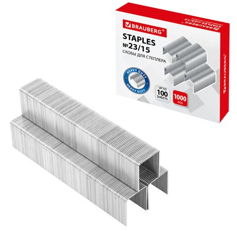 Скобы для степлера №23/15, 1000 штук, BRAUBERG, от 40 до 100 листов, 227716