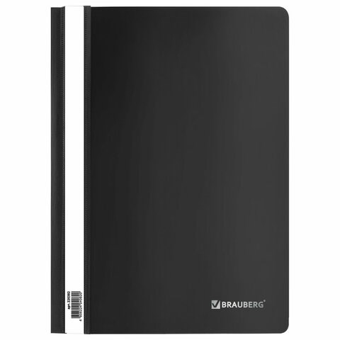 Скоросшиватель пластиковый BRAUBERG, А4, 130/180 мкм, черный, 220382