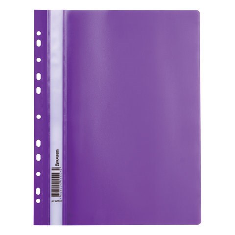 Скоросшиватель пластиковый с перфорацией BRAUBERG, А4, 140/180 мкм, фиолетовый, 226584