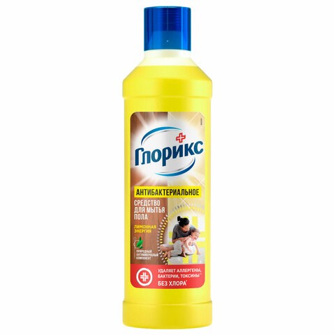 Чистящее средство ГЛОРИКС для всех видов поверхностей: линолеума, кафеля, ламината, искусственного камня, пластика. Эффективно очищает и дезинфицирует пол без хлора, убивая 99,99% бактерий. Надолго оставляет приятный запах.