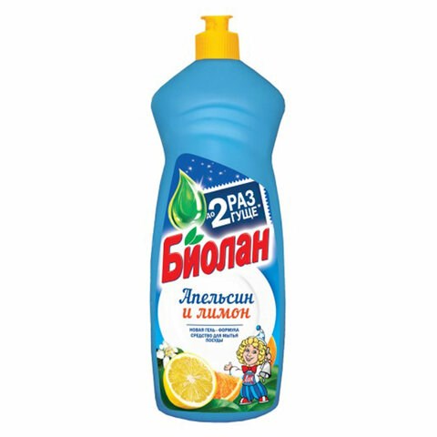 )Моющее средство для посуды БИОЛАН «Апельсин и лимон» эффективно удаляет жир, хорошо пенится и легко смывается водой. Не оставляет разводов и придает блеск посуде.