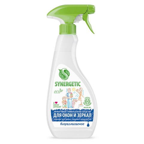 Средство для мытья стекол и зеркал 500 мл SYNERGETIC, c антибактериальным эффектом, биоразлагаемое,