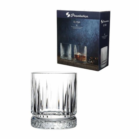Стакан низкий, объем 355 мл, КОМПЛЕКТ 4 штуки, стекло, PASABAHCE "ЭЛИЗИЯ", фирменная подарочная упаковка, 520004