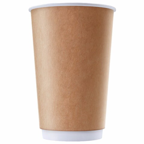Стакан одноразовый бумажный 400/530 мл, КОМПЛЕКТ 25 шт., двухслойный, Kraft, холодные/горячие напитки, ФОРМАЦИЯ, DW90-530-1182