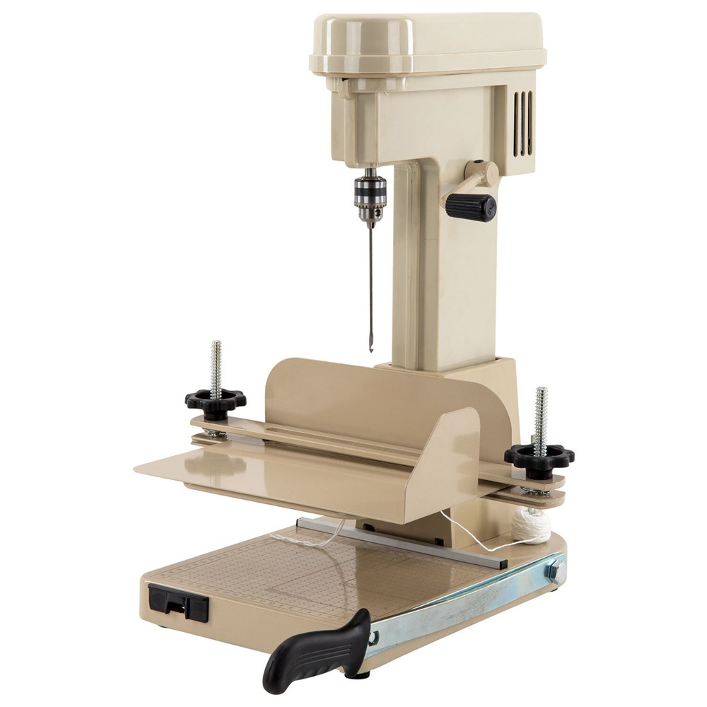 Благодаря мотору мощностью 250 Вт станок способен сверлить и прошивать стопу бумаги до 100 мм (950 листов). Струбцина-лоток позволяет сформировать пачку бумаг и удерживать их вместе для точного и равномерного расположения листов.