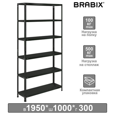 )Металлический стеллаж BRABIX собирается с помощью болтов, за счет чего достигается устойчивая конструкция. Простой и экономичный способ организовать хранение вещей и различных грузов. Прекрасно дополняет интерьер в стиле «лофт» благодаря цвет...