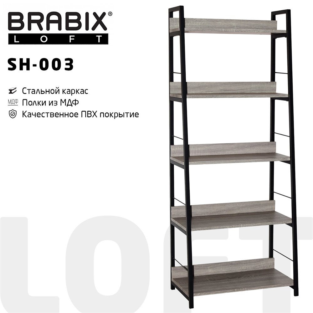 Лёгкая сборка, функциональность, лаконичный современный дизайн и компактный размер по разумной цене - это безусловные преимущества стеллажа BRABIX LOFT SH-003.
