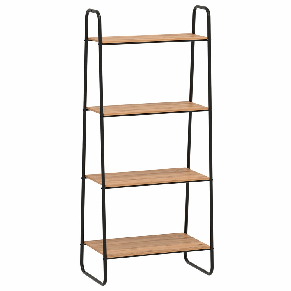 Стеллаж на металлокаркасе "Скандинавия-24", 650х385х1470 мм, 4 полки ЛДСП, черный/дуб