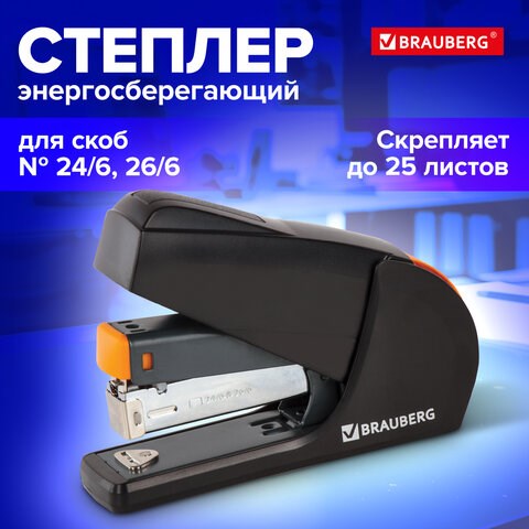Степлер ЭНЕРГОСБЕРЕГАЮЩИЙ №24/6, 26/6 BRAUBERG "Easy Press", до 25 листов, БЕЗ УСИЛИЙ, 224348
