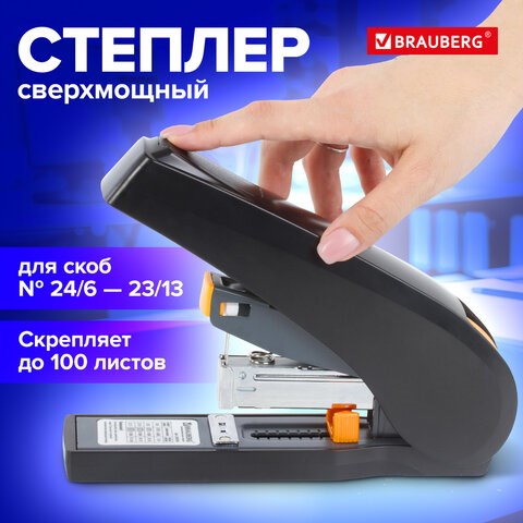 Степлер ЭНЕРГОСБЕРЕГАЮЩИЙ МОЩНЫЙ №24/6-23/13 BRAUBERG "Easy Press", до 100 листов, БЕЗ УСИЛИЙ, 224350