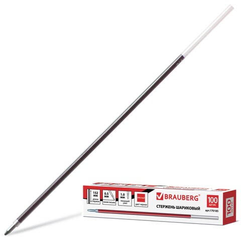 Стержень шариковый BRAUBERG 152 мм, КРАСНЫЙ, узел 1 мм, линия письма 0,5 мм, 170185