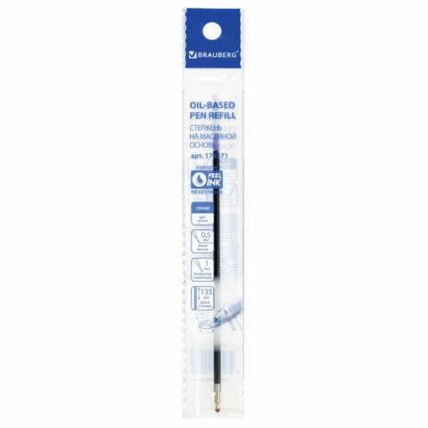 )Надежный сменный стержень BRAUBERG для шариковых ручек.