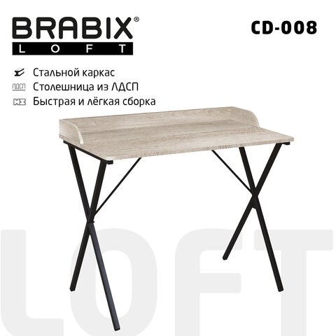 BRABIX LOFT CD-008 – современный компьютерный стол в стиле лофт. Его минималистичный дизайн отлично подойдет для небольшого кабинета, офиса или лоджии.
