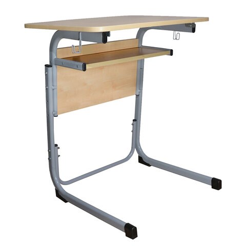 Стол-парта 1-местный регулируемый "Атлант", 600х500х640-760 мм, рост 4-6, серый каркас, ЛДСП клён