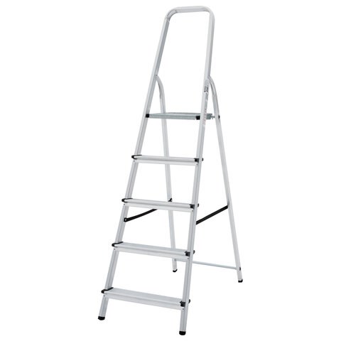 Стремянка алюминиевая 5 ступеней, высота площадки 1,04м, дуга безопасности 0,6м, площадка 26х26см, до 150кг, вес 4кг, НОВАЯ ВЫСОТА, 1110105