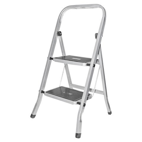 Стремянка стальная КЛАСС ПЛЮС, 2 ШИРОКИЕ СТУПЕНИ 20х30 см, верхняя площадка 45 см, до 120 кг, 123302