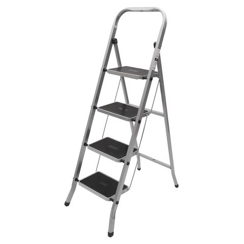 )Стремянка стальная с широкими ступенями и антискользящим резино-пластиковым покрытием предназначена для проведения широкого спектра работ на высоте. Данная лестница очень устойчивая и удобная в использовании.