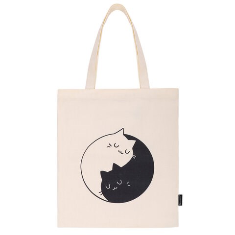 Сумка шоппер BRAUBERG PREMIUM, канвас, 40х35 см, на кнопке, карман, бежевый, "Yin-yang", 271901