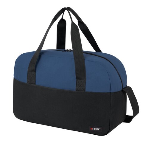 Сумка спортивная HEIKKI BASE (ХЕЙКИ), карман на молнии, черная/темно-синяя, 30x44x17 см, 272622