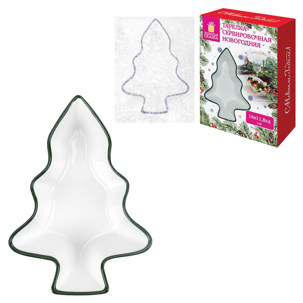 Тарелка сервировочная новогодняя 16х11,8х4 см,"Елочка", каменная керамика, ЗОЛОТАЯ СКАЗКА, 592547