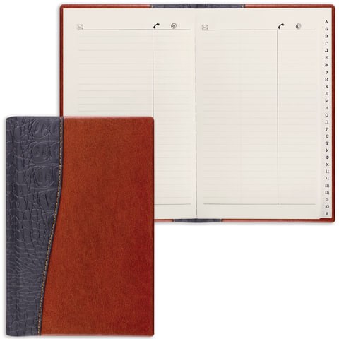 Телефонная книжка А5 (136х202 мм), BRAUBERG "Cayman", комбинированная гладкая и кожа крокодила, 96 л., вырубной алфавит, 125129
