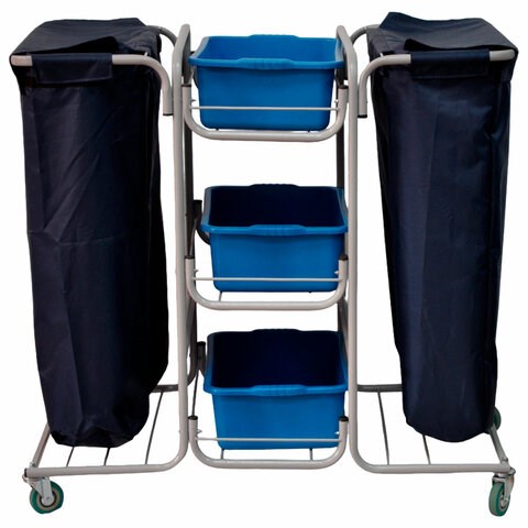 Тележка уборочная Eco-Force МНОГОФУНКЦИОНАЛЬНАЯ (отель, кафе, столовые, офис), 3 поддона, 2 держателя и основания для мешка, 2 мешка, 26EF/4
