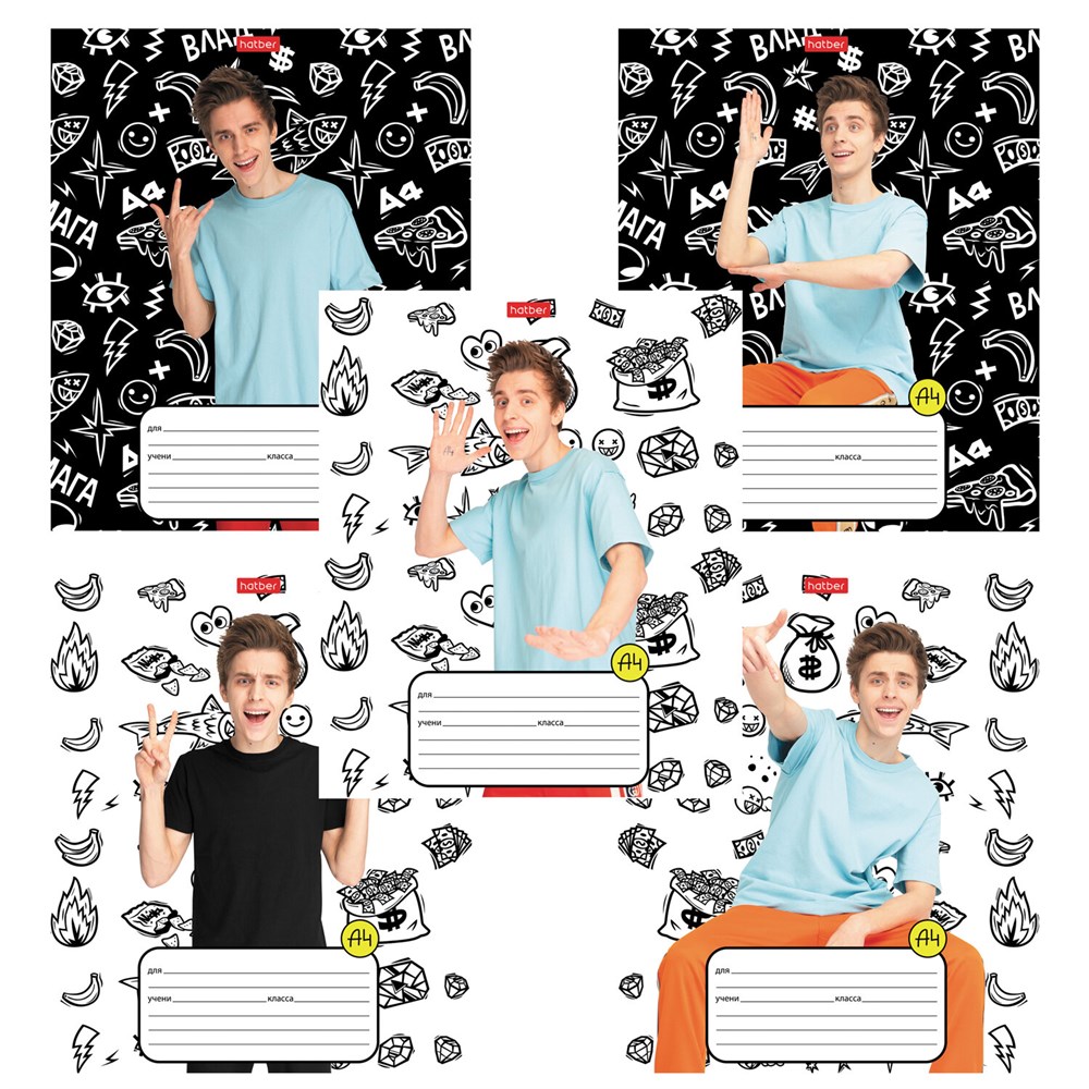 Тетрадь 12 л., HATBER клетка, обложка картон, "Влад А4" (микс в спайке), 073122, 12Т5В1