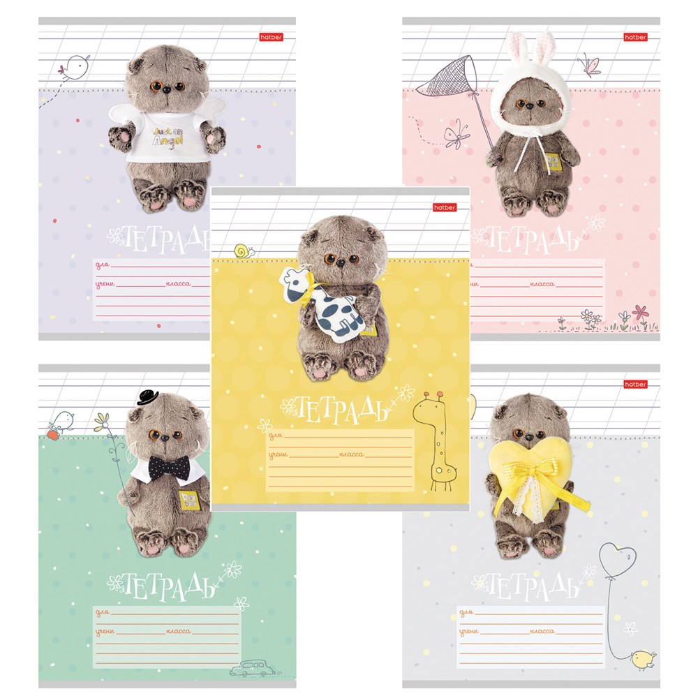 Тетрадь 12 л., HATBER косая линия, обложка картон, "Кот Басик" (микс в спайке), 051747, 12Т5В6