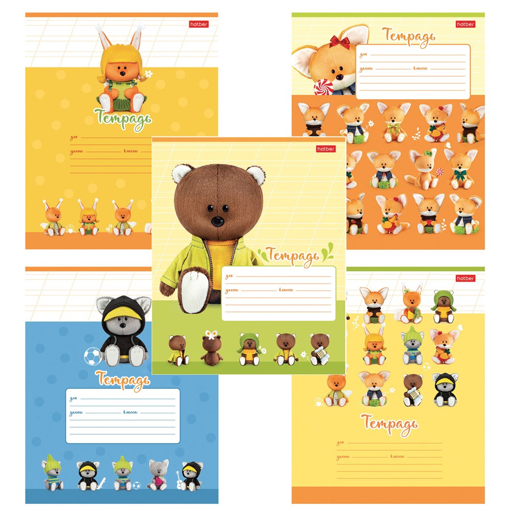 Тетрадь 12 л., HATBER косая линия, обложка картон, "ЛЕСЯТА" (микс в спайке), 080090, 12Т5В6