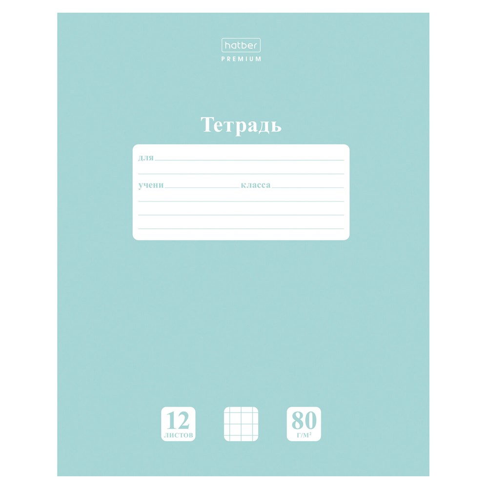 Тетрадь 12 л., HATBER Premium, клетка, обложка картон, плотная бумага 80 г/м2, "NEWtone" Зеленый нефрит, 089683, 12Т5A1_05059