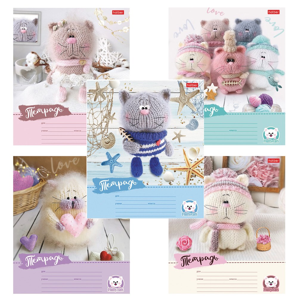 Тетрадь 12 л., HATBER узкая линия, обложка картон, "Уютные котики" (микс в спайке), 075154, 12Т5В7
