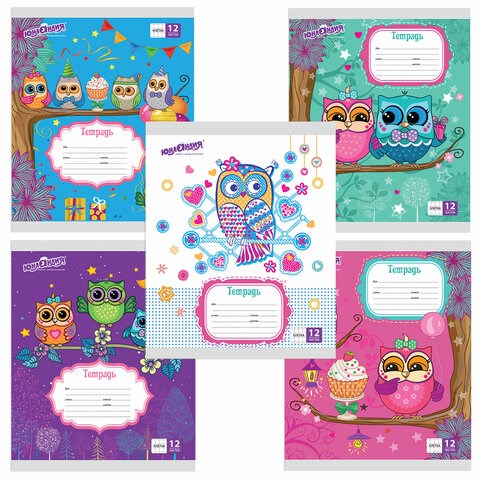 Тетрадь 12 л. ЮНЛАНДИЯ клетка, обложка картон, СОВЯТА, 104918