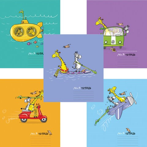 Тетрадь 12 л., ПЗБМ клетка, выборочный лак, брайль, "Трое в лодке, не считая жирафа" (5 видов), 15960