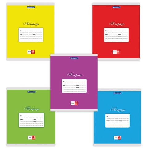 Тетрадь 12л. BRAUBERG КЛАССИКА, линия, обложка картон, АССОРТИ (5 видов), 103274