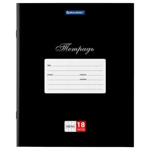 Тетрадь 18 л. BRAUBERG "КЛАССИКА", клетка, обложка картон, ЧЕРНАЯ, 106476