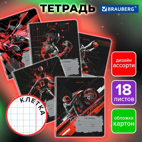 Тетрадь 18 л. BRAUBERG, клетка, обложка картон, MEN'S SPORT, 107294