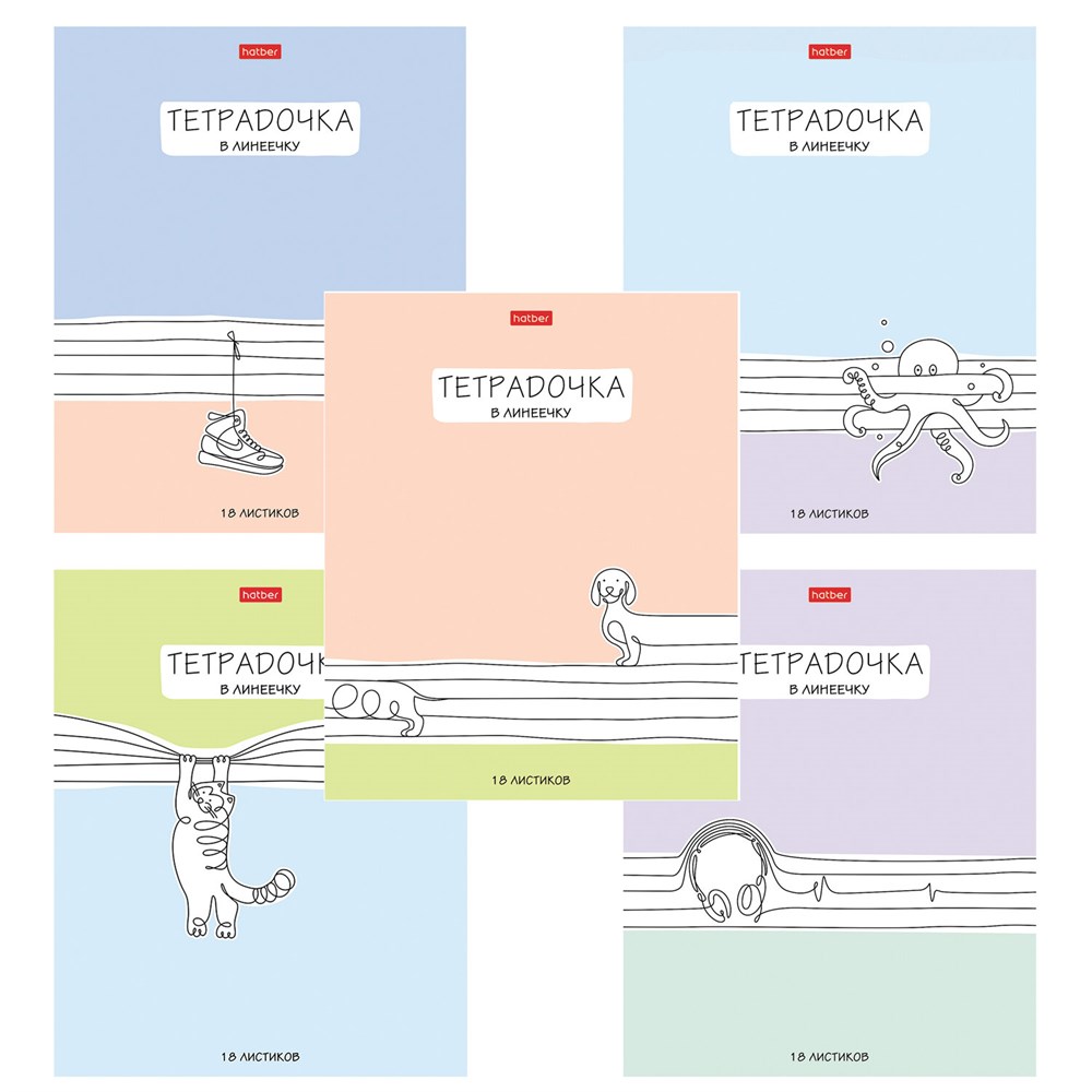 Тетрадь 18 л. HATBER линия, обложка картон, "Тетрадочка в линеечку" (микс в спайке), 080584, 18Т5В2