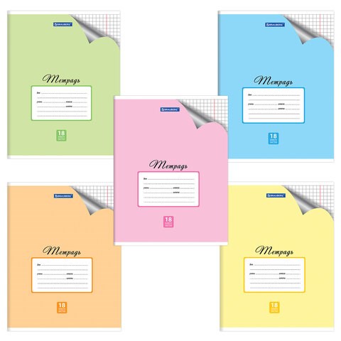 Тетрадь 18л. BRAUBERG ЭКО, клетка, обложка офсетная, «Пастельная с уголком», 5 видов