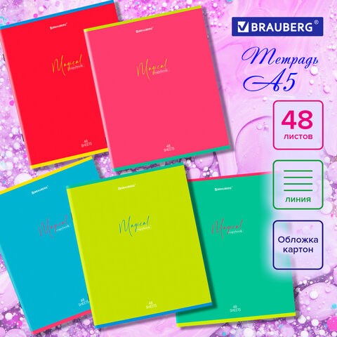 Тетрадь 48 л. А5 BRAUBERG скоба, линия, обложка картон, "Magical Colors", 404385
