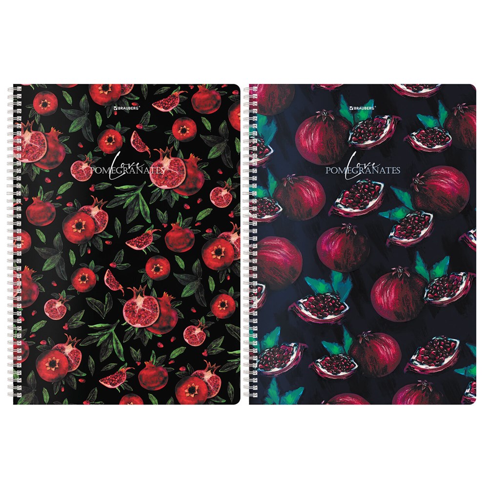 Тетрадь А4, 96 л., BRAUBERG, гребень, клетка, глянцевый лак, "Гранаты" (микс в спайке), 405314