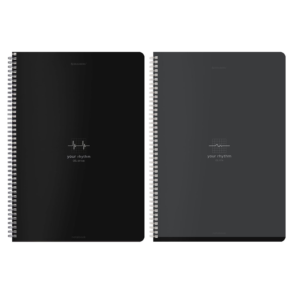 Тетрадь А4, 96 л., BRAUBERG, гребень, клетка, матовая ламинация, "Ритм" (микс в спайке), 405321