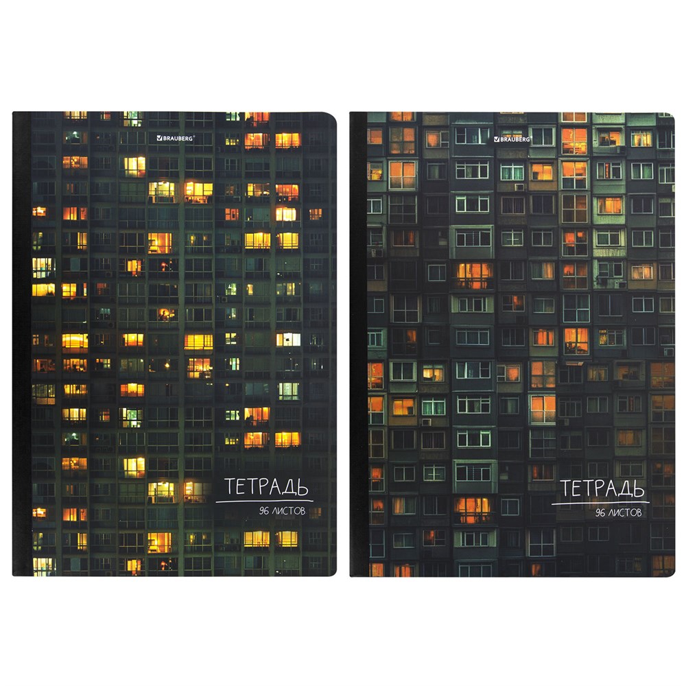 Тетрадь А4 96 л. BRAUBERG, на сшивке с корешком, клетка, обложка картон, "Многоэтажки", 405285