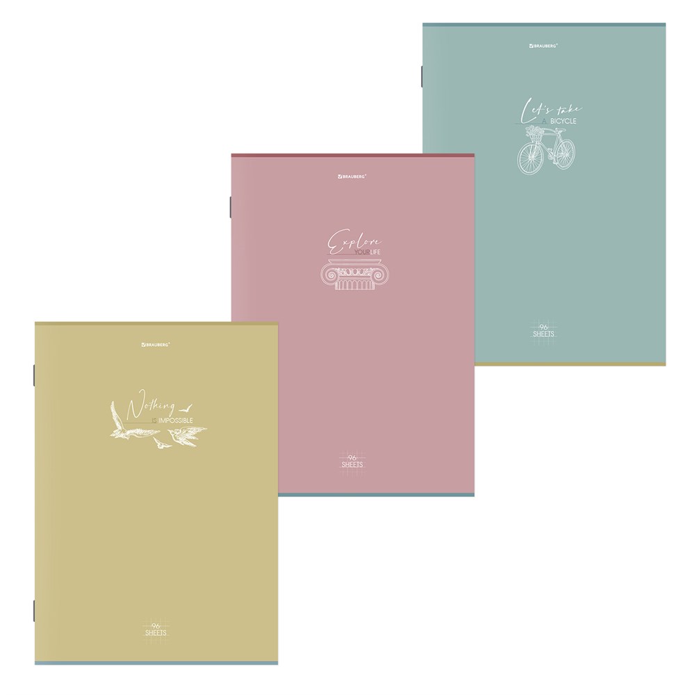 Тетрадь А4, 96 л., BRAUBERG, скоба, клетка, глянцевый лак, "Pastel", (микс в спайке), 405323