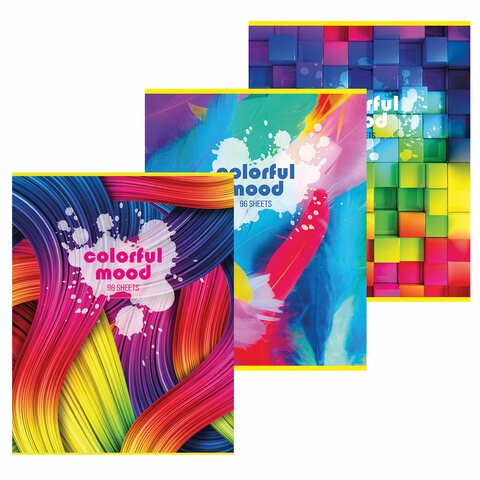 Тетрадь А4, 96 л., STAFF "Basic" скоба, клетка, офсет №2 ЭКОНОМ, обложка картон, "Настроение", 404068