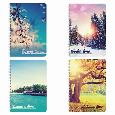 Тетрадь А4, 96л. гребень, клетка, обложка мелованный картон, офсет белый, "4 сезона" BRAUBERG,