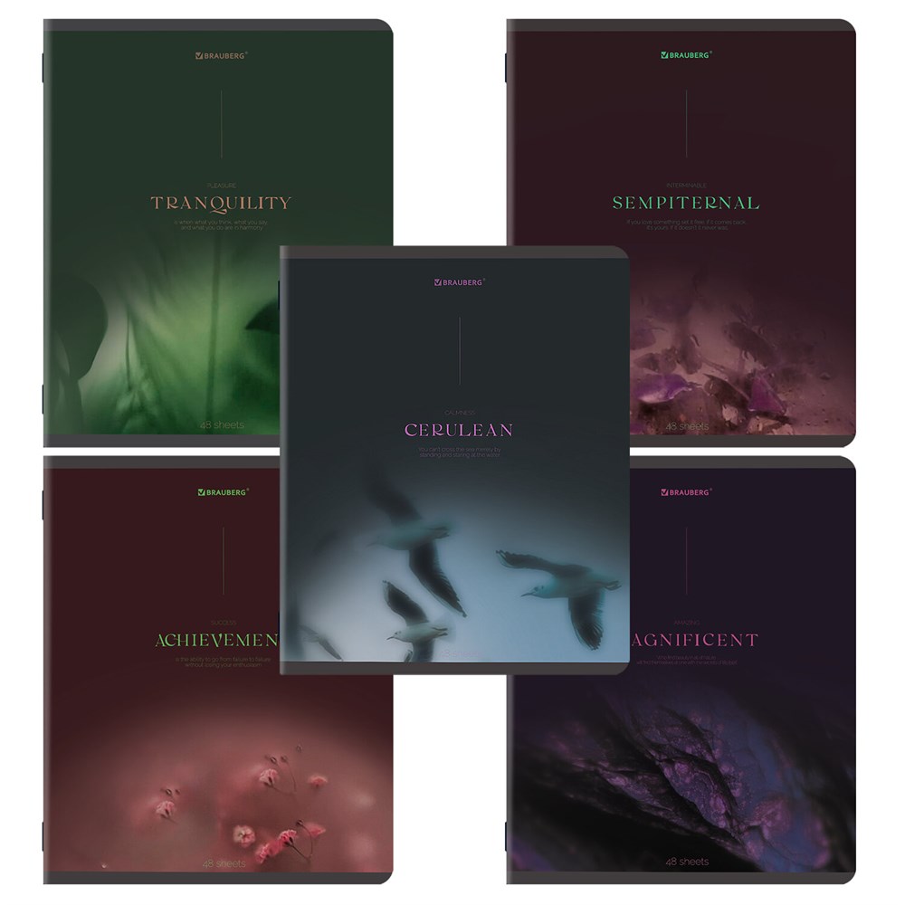 Тетрадь А5, 48 л., BRAUBERG, скоба, клетка, SoftTouch, "Peaceful", (микс в спайке), 405327