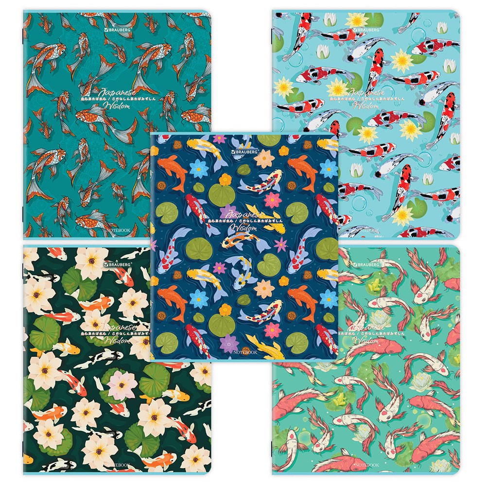 Тетрадь А5, 48 л., BRAUBERG, скоба, клетка, TWIN-лак, "Карпы Кои" (микс в спайке), 405332