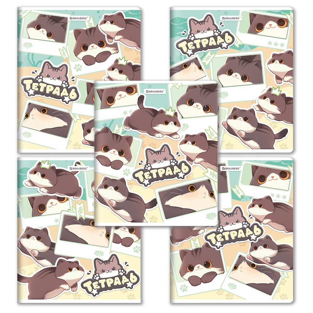Тетрадь А5 48 л. BRAUBERG скоба, клетка, выборочный лак, кросс-серия МИЛЫЕ КОТЫ, 405193