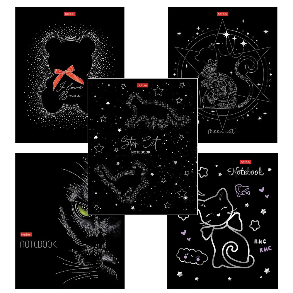 Тетрадь А5 48 л., HATBER скоба, клетка, матовая ламинация, 3D-фольга, "Кошки-мишки" (микс), 087356, 48Т5лофВ1